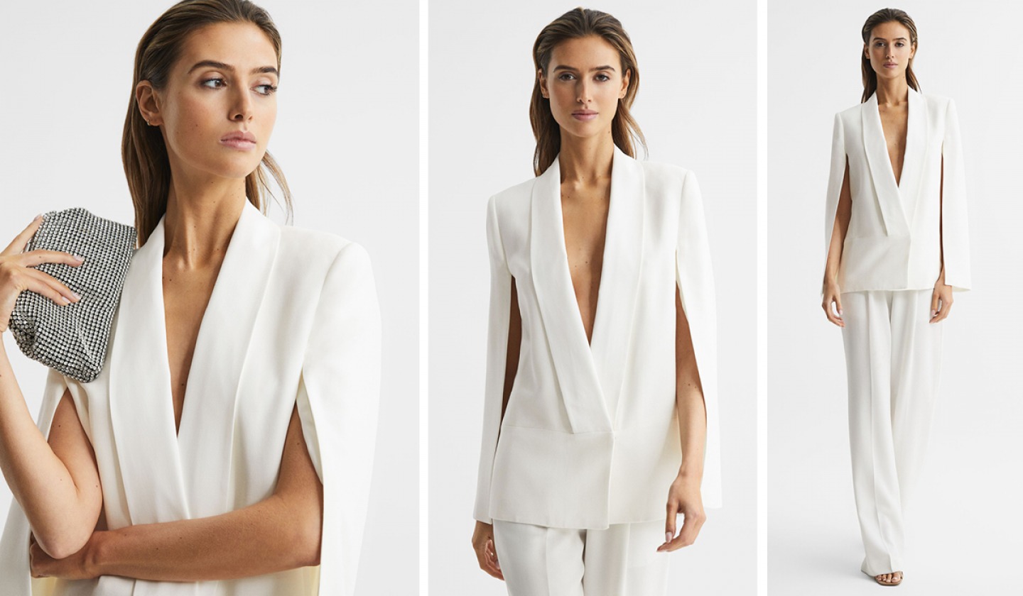 Cream tuxedo blazer, £328 and trousers, £98 both Reiss, Newcastle