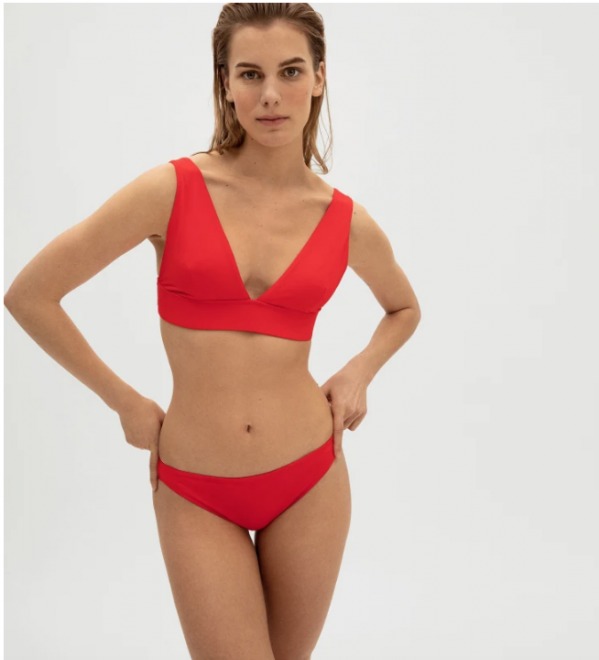 Deep V red bikini top, £38, and bottoms, £28 both everlane.com