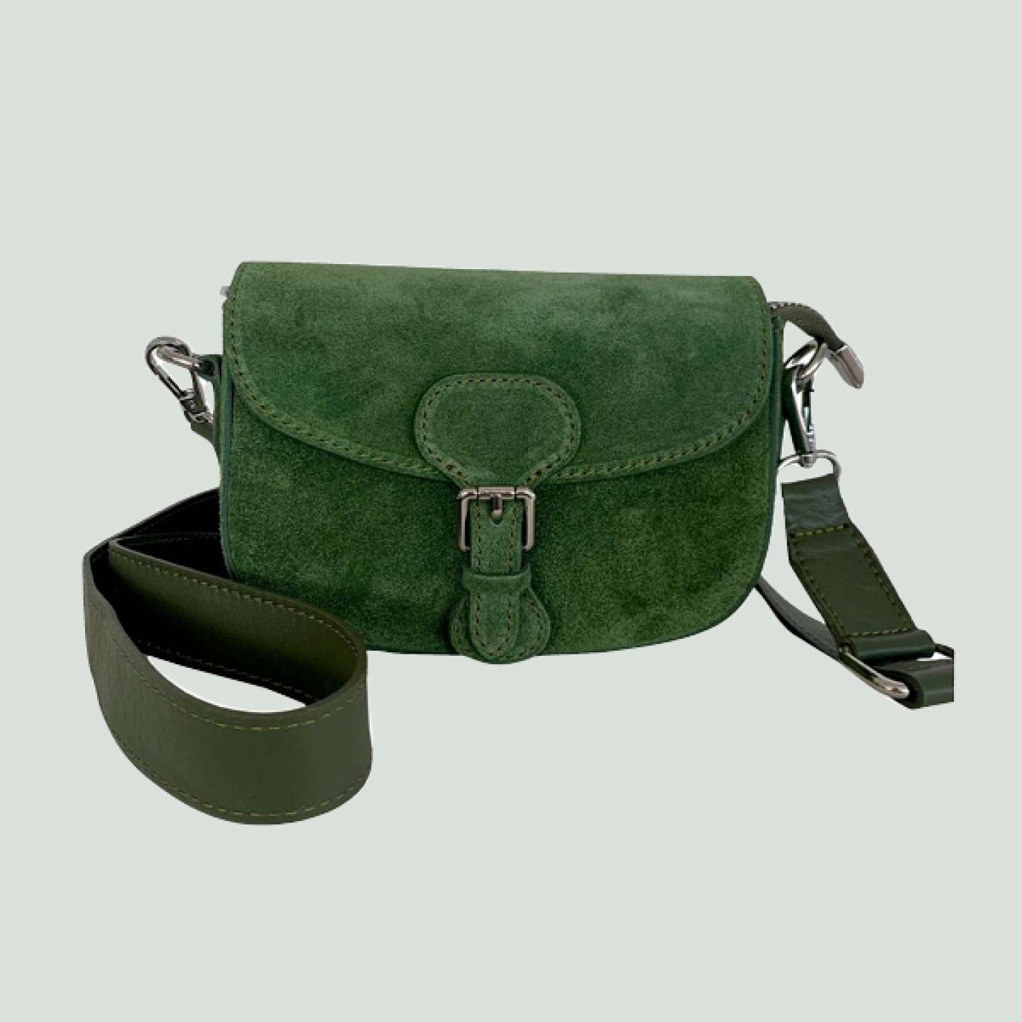 This pretty bag in genuine Italian suede leather is perfect as both a clutch and a small cross-body bag for all your essentials. The combination of Italian suede and silver hardware gives a modern and sleek finish and the lined interior means you can keep your belongings extra safe without damaging the exterior suede of the bag. Available in a variety of colours, we love this bag in bold green.
