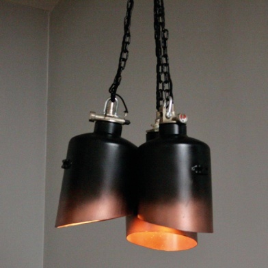 Bucolic Design use reclaimed metal to create functional lighting, often working with decommissioned fire extinguishers.