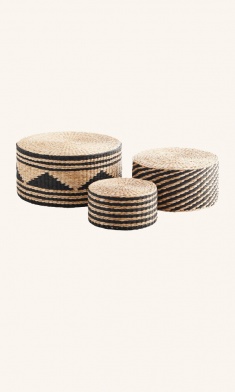 Black striped seagrass pouffes