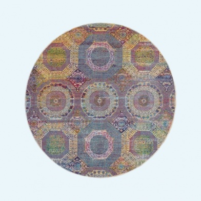 An antique-inspired design in a contemporary palette and shape. Anika round rug, At Home Furnishings, Stockton