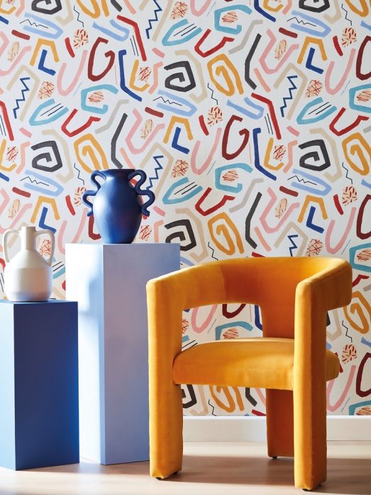 This expressive pattern seems to dance across the wall. Squiggle Lapis & Honey wallpaper, ohpopsi.com