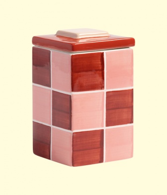 Pink and red storage jar, £25 roseandgrey.co.uk