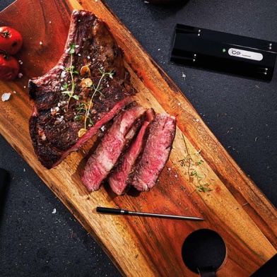 This wireless thermometer is a game-changer. Insert the sensor in the meat, connect it to your phone via WiFi or Bluetooth, and it’ll let you know when your dish is perfectly cooked. cookperfect.com