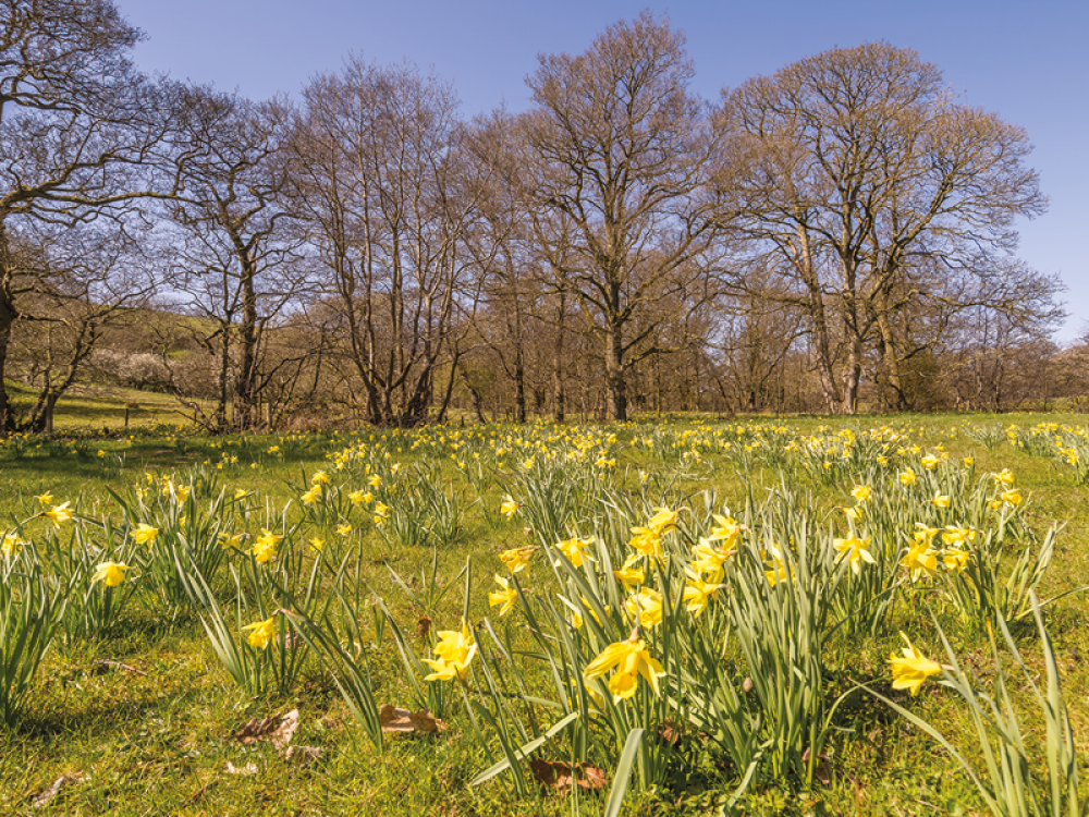 Thousands of wild daffodils stretch across the landscape in soft, sweeping drifts. They line the river, spill into woodland edges, and glow against the fresh spring grass. It’s not a display, it’s a takeover!