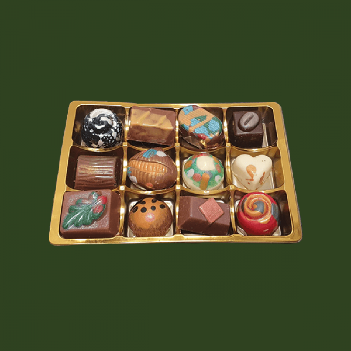 The perfect blend of flavours, this special selection box includes lemon curd, clotted cream and gingerbread. Christmas Tray of 12 Chocolates, £12 Summore Chocolate