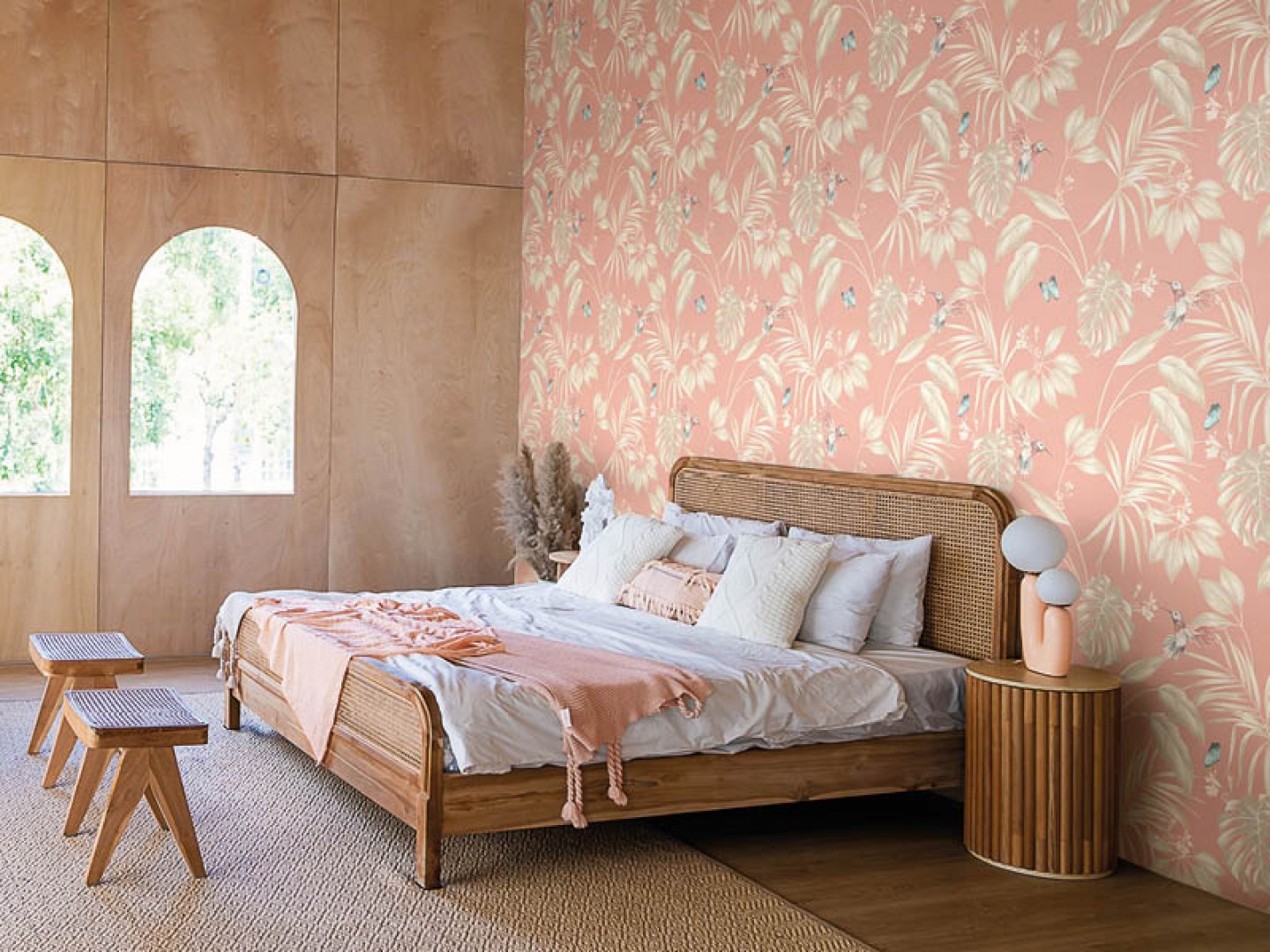 Nalina wallpaper in peach, £79 per roll Harlequin, stockists regionwide