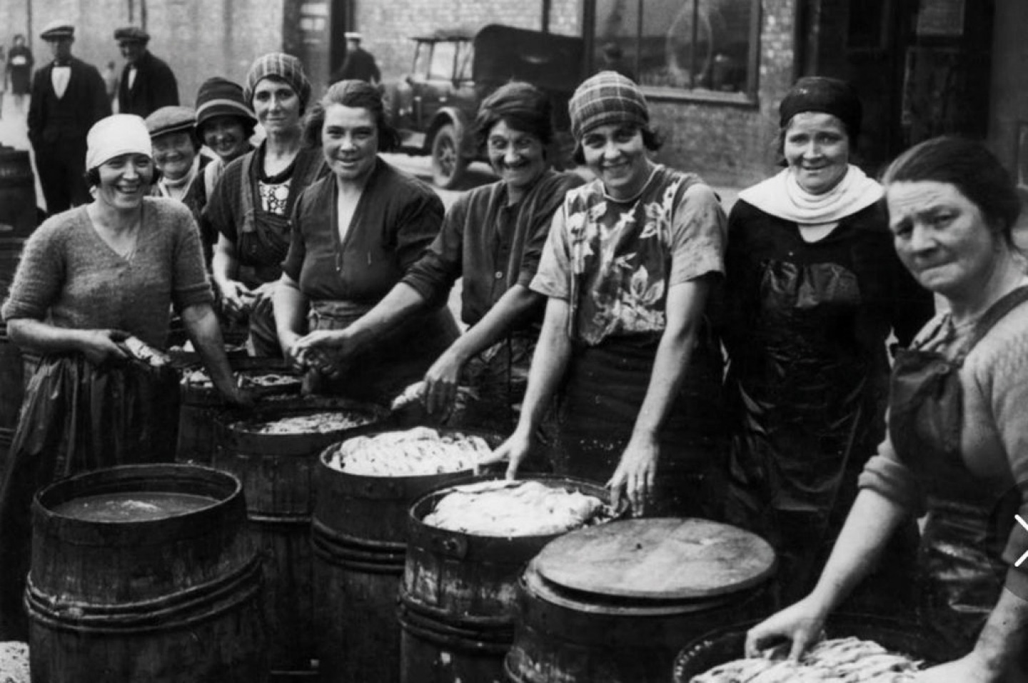 Lily Christie is another example of a determined local woman in the industry. She worked at Harry Horn’s kipper factory on the Fish Quay until she got married. Her husband Bertie worked on a steam trawler and, after he had a serious accident at work, Lily went back to work in the factory.