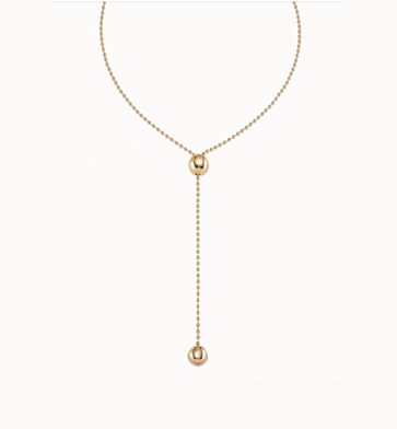 Handmade in Spain, this classic lariat necklace with two counterweights has an adjustable length so you can switch up your look depending on the occasion.