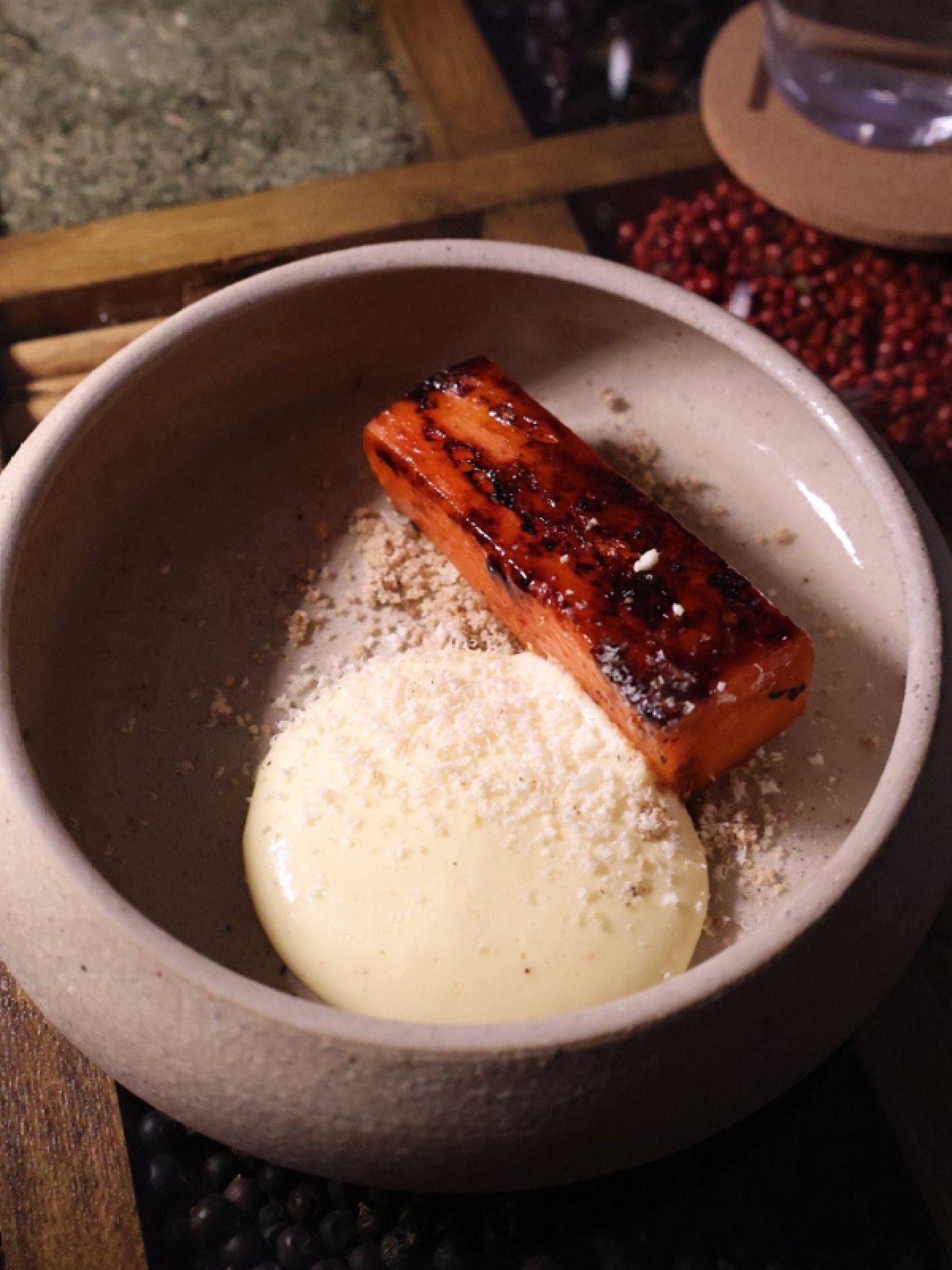 The two members of staff who work the floor have a great knowledge of what’s on the menu, and keep the atmosphere relaxed as we move onto the next course, ‘Brie Mine’, a twice-baked brie and spinach soufflé with cheddar cream and pickled walnut (which is having its moment on all of our favourite cooking shows right now). After this comes what remains my highlight of the evening ‘My Heart Skrei-ms for You.’ A fabulous dish for fans of ‘fishy’ fish, we tucked into skrei cod wrapped in nori with a seaweed salad, all in a delicious Champagne cream.