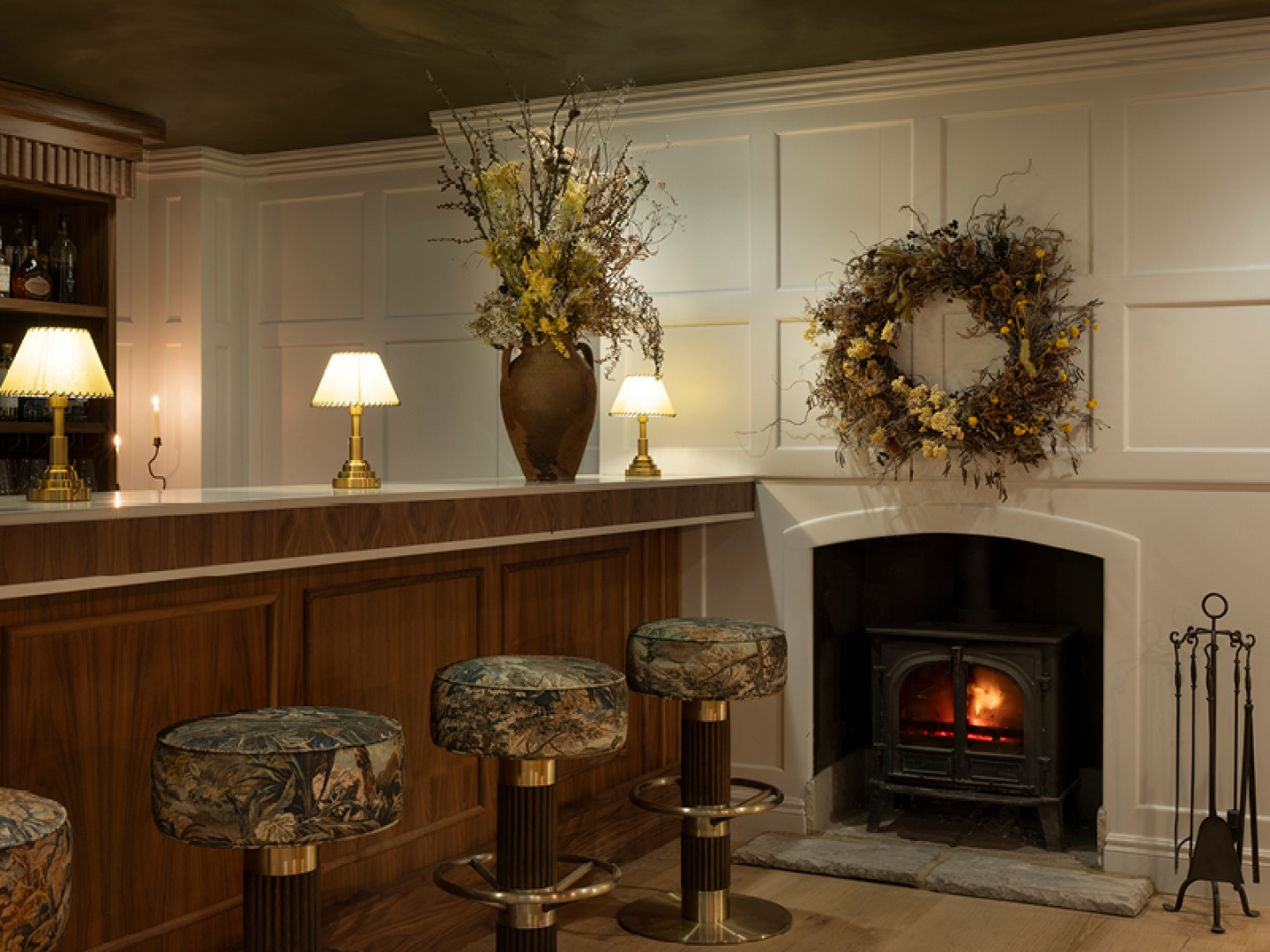 The hotel itself is warmly lit and welcoming, and before we’ve even checked in we’re both enjoying a glass of sparkling tea (which is much nicer than it sounds) before being promptly shown up to our room. It’s a dream in pale, calming hues, with sandy-coloured tiles beneath a deep free-standing tub, a four-poster bed, a comfortable seating area, plus a spacious bathroom with a walk-in rainfall shower. Underfloor heating is a welcome find given the frosty weather outside.