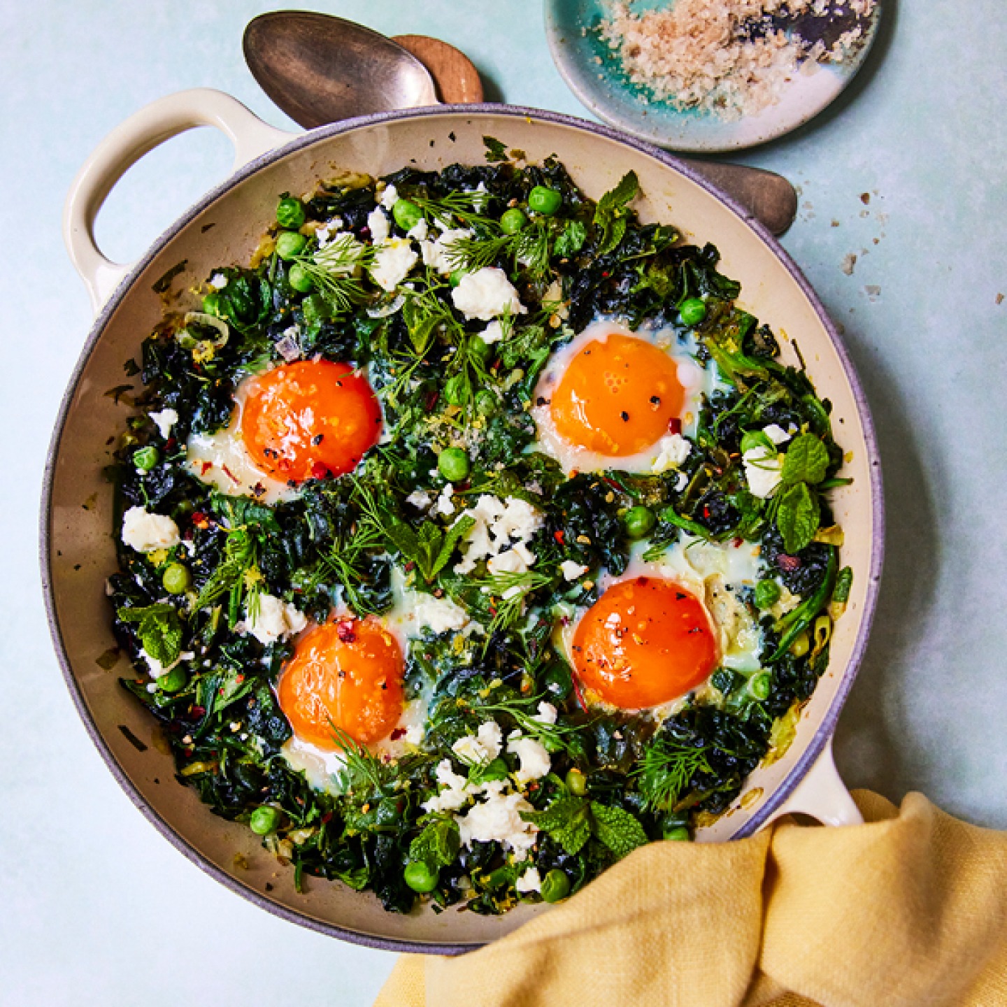 From baked eggs and cheesy baked croissants to croque madame blueberry pancakes - here's five recipes to try.