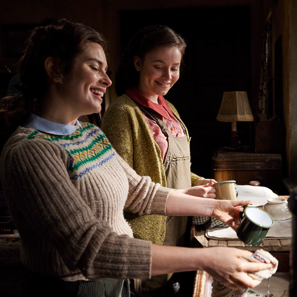 The rest of the Christmas magic happens in post-production. ‘Some snow may be added in the far distance at this point if required,’ says Katy. ‘The Christmas special always has a slightly different feel to the previous six episodes as it is a very different time of year – lots of roaring log fires, traditional decorations, the feel of winter cosiness, and a time to celebrate friends, family and indeed life during the war years. Mrs Hall is always found making mince pies, though on limited rations this year, but trying her best with the few coupons she has. And where necessary, we add some special effects of snow and frost. I’ve been asked so many times if we use icing sugar for frost. We don’t!’
