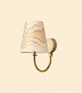 Tapered shade in gold and white porto marble paper, £27, and Gramma wall fitting, £56 both pooky.com