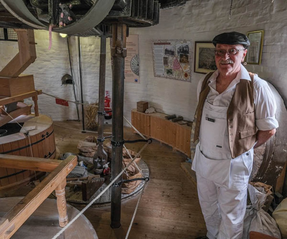 Nowadays, four days a week the windmill’s sails can be seen spinning on the skyline, while inside volunteers pack bags of flour. This flour is produced by three working sets of millstones, one of which was the most recent restoration within the windmill carried out earlier this year. ‘We’ve now gone back to wind power just as it was when it was first built! We do have electricity as well because our sails are huge, around three metres wide by 10 metres long, so they’re very, very heavy. We need a really good 15mph wind, if not stronger, to mill by wind and we just don’t get that kind of wind so much these days,’ Richie explains.
