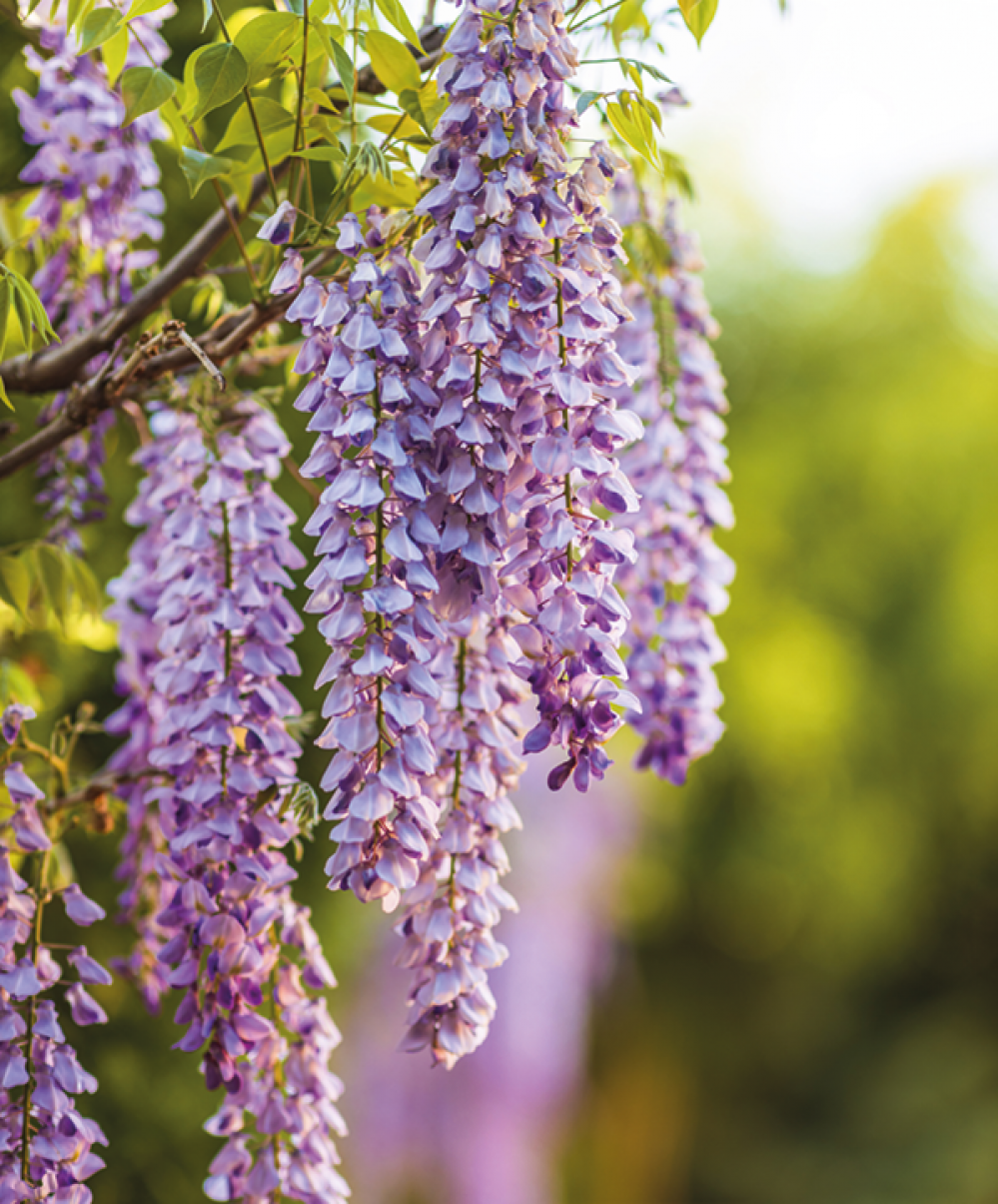 Wisteria are deciduous vines native to the eastern states of North America, China and Japan. There are 10 species in the genus, and the most common is the Chinese wisteria sinensis. Its deep lilac flowers bloom in late spring and hang down in elegant columns. Choosing a plant that has been grown from cuttings or by grafting tends to be the more reliable option for success as seed-raised wisterias tend to flower less frequently and can even take up to 20 years to flower.