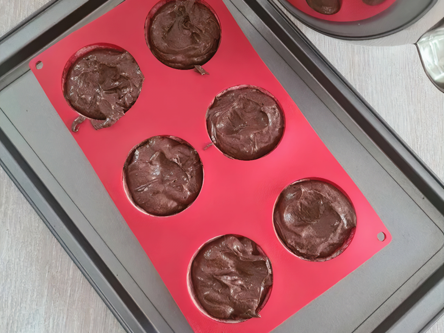 Grease the Christmas pudding mould with cake release (or butter and a light coating of flour). Put the mould on a baking tray.