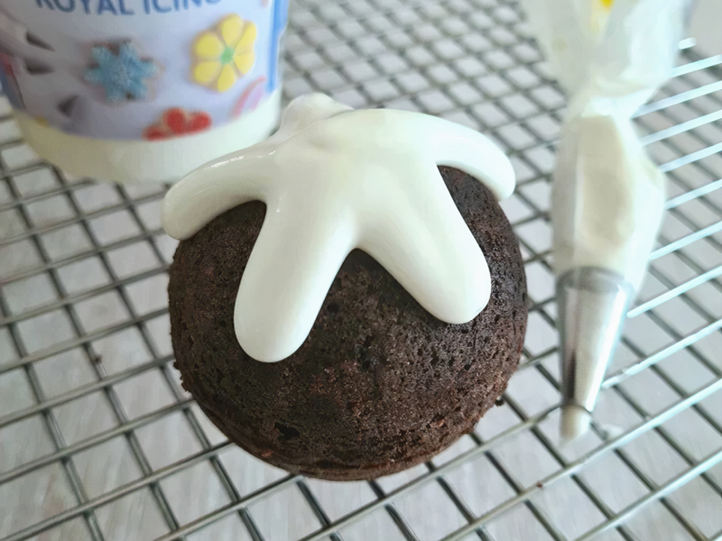 Pipe the tops with royal icing for the ‘custard’, letting it run down the sides of the cake.