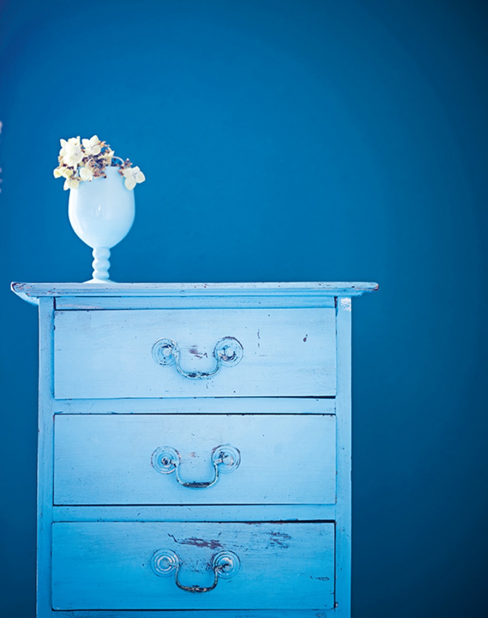 I could happily live in a completely blue room, as it would have such a soothing and calming atmosphere. Blue is a colour that works especially well when you layer up different shades to create a tone-on-tone effect, resulting in a harmonious interior with a sense of depth. Using a slightly darker blue backdrop with lighter furniture and accessories is a great way to make an interesting feature in your home.