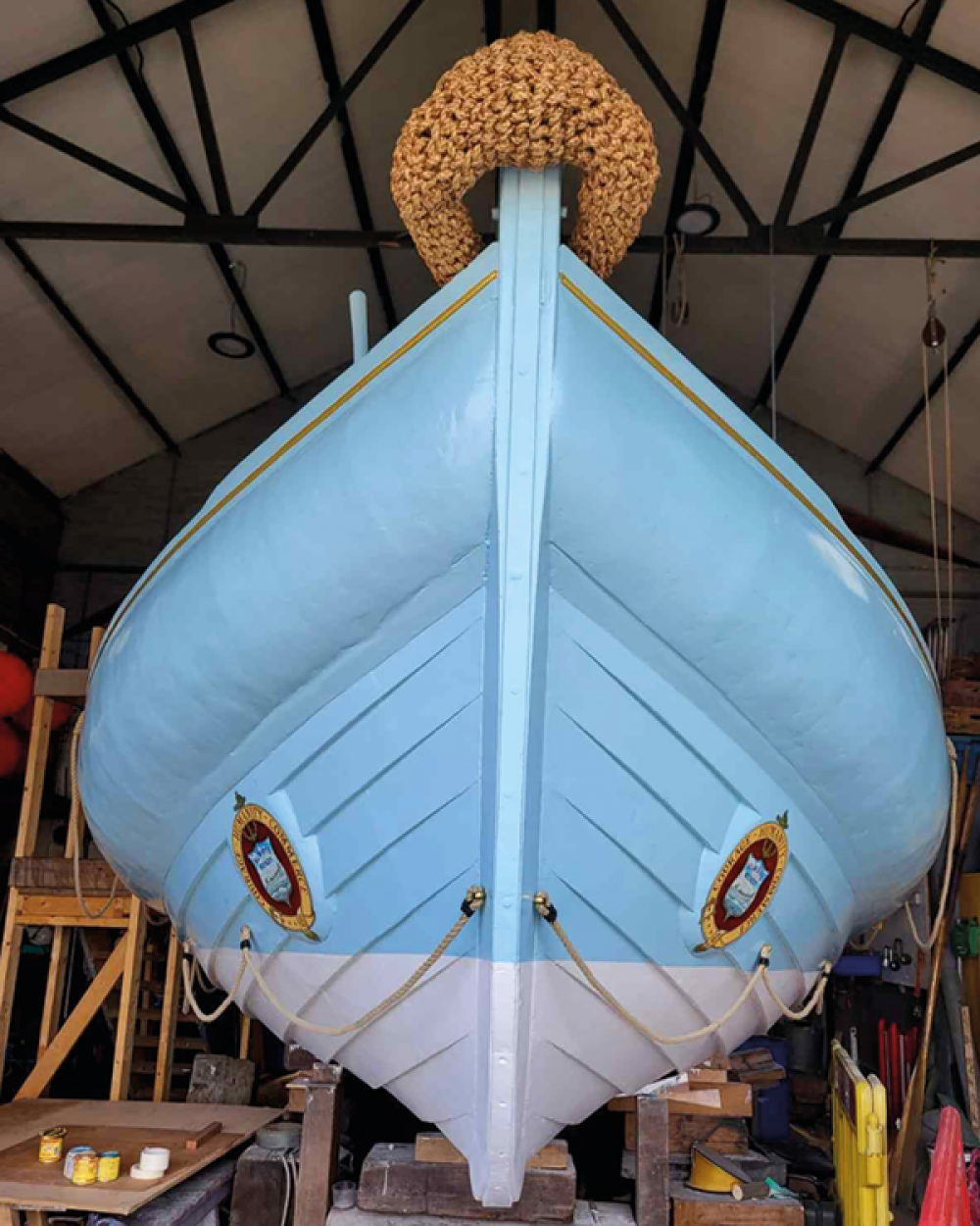 ‘We have 10–12 people in the workshop on any day and there were a number of people involved in the project. We have a range of people here from joiners to shipwrights, and even engineers, so the whole gallon really. We had the guys who made the wheels, as she’s the only lifeboat of that age still left on her original carriage so we had to restore the carriage and turn ourselves into wheelwrights to rebuild them like wooden cart wheels. We had a load of people who made the new frames and so on for the boat, so there was an awful lot that went on.’