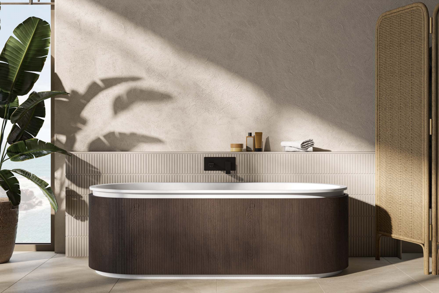 These pieces sit at the intersection of spa-inspired calm and architectural design, offering softness without sacrificing statement. Walnut’s warmth contrasts beautifully with stone, porcelain and marble, making it ideal for layered, high-end interiors that feel both grounding and elevated.