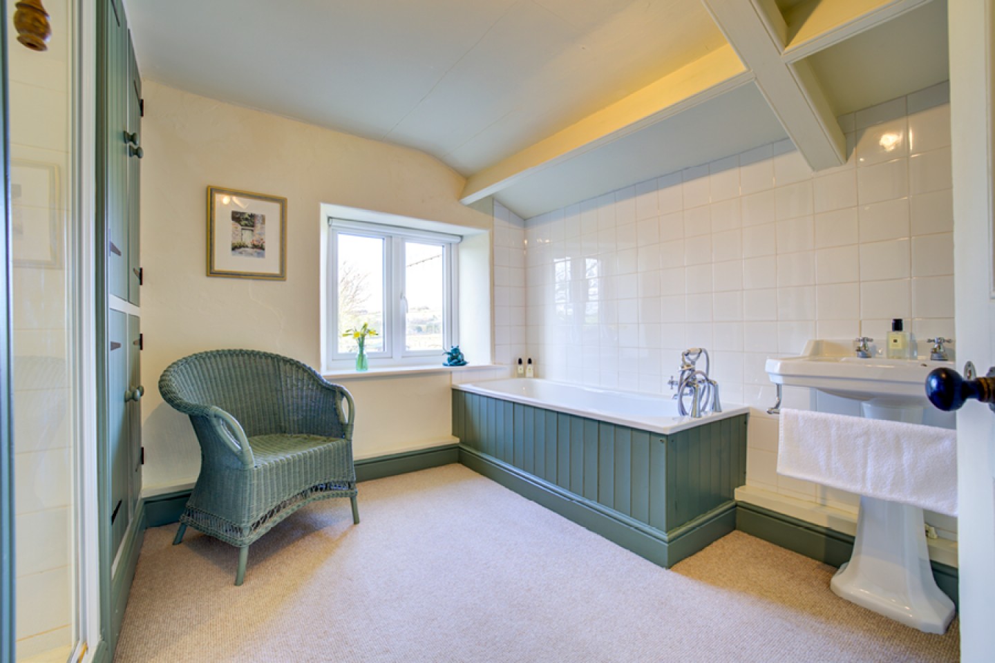 Throughout the property there is a wonderful sense of character, with exposed stonework and original features that reflect the farmhouse’s heritage. At the same time, the layout provides versatility for growing families or those seeking space to work creatively from home.