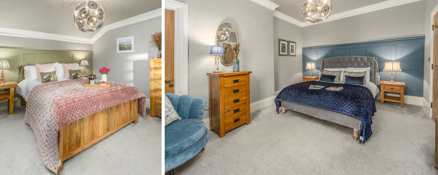 The spacious main bedroom features a king-size bed, walk-in wardrobe, floor length mirror and large velvet armchair for a luxurious stay. Plus, the east-facing original sash windows offer optimum views of the beautiful St. Paul’s Church. On this floor is a further double bedroom and a single.