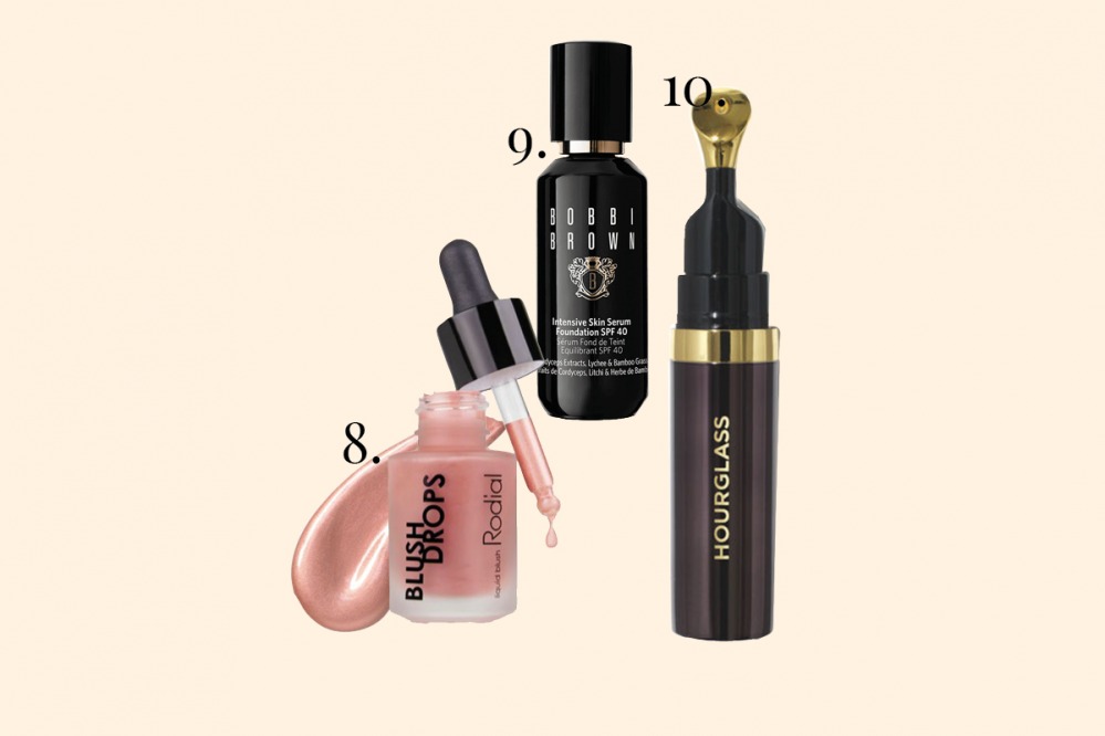 8. A pop of micro-milled minerals and light-reflecting mineral colour, this silky blush infused with lots of vitamin E gives a radiant, rosy glow. Blush Drops, £35 Rodial