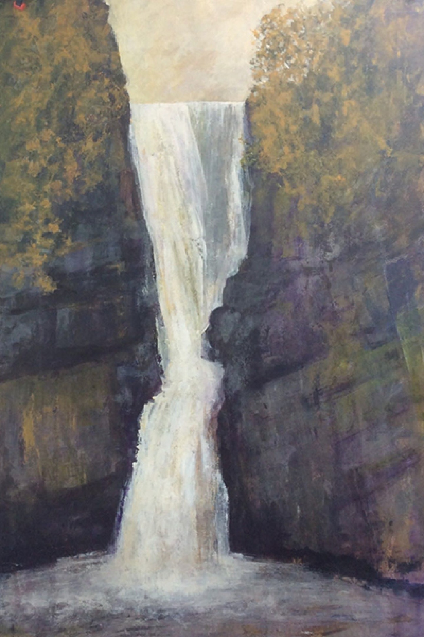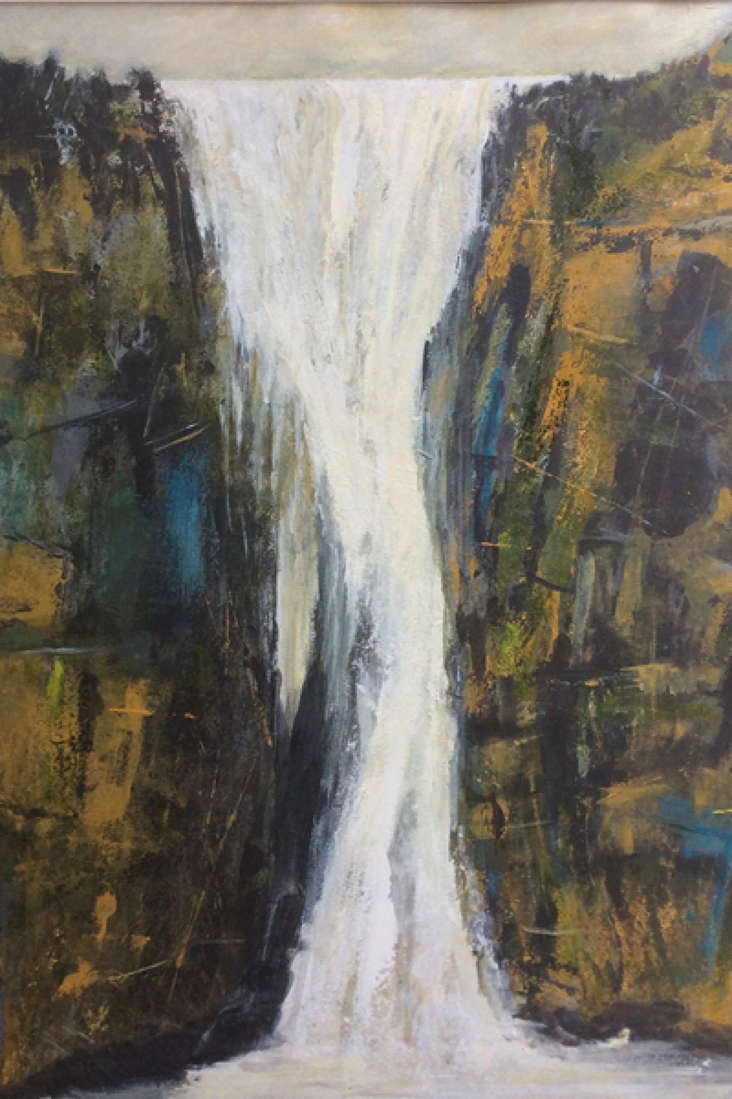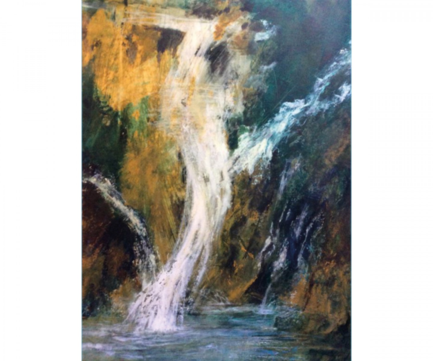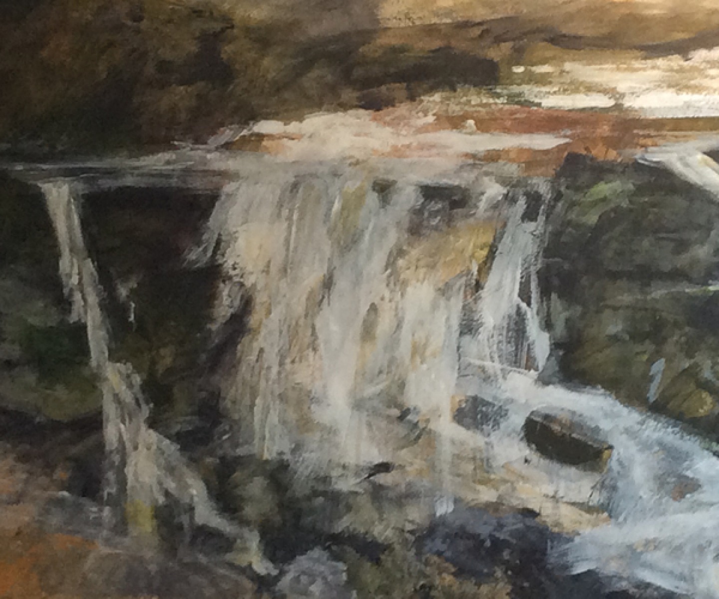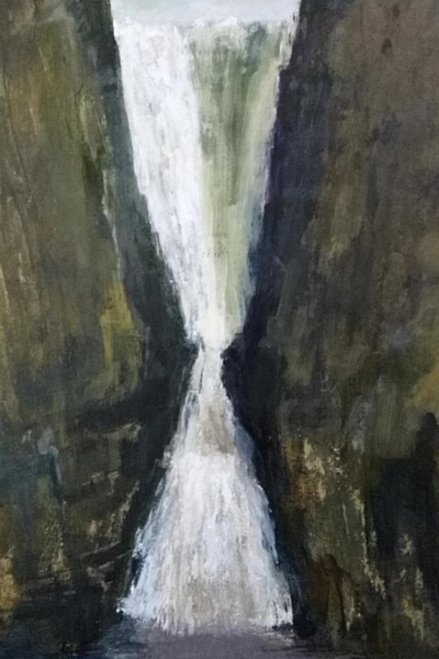 Brian makes it clear that his waterfall paintings are not intended to be exact representations. ‘I don’t use photographs on that basis. It’s about trying to capture the atmosphere of where you are,’ he says. ‘I moved to Hetton seven years ago, and around me I have Barden Moor and Malham Cove within a few miles but I think my waterfall interest started with Gordale Scar. There’s a waterfall there and it’s not really dramatic, but then we had a lot of rain a few years ago and places that I walked and knew every inch of were suddenly full of small waterfalls, and then you’d get the meltwater after the snow and waterfalls would appear that had never been there before.’