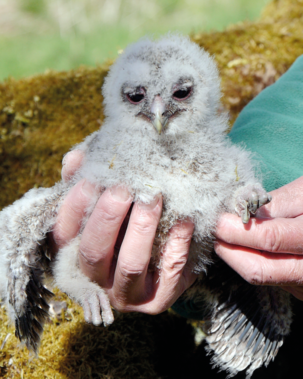 Thousands of chicks have been ringed as part of the study, revealing amongst other things that some have gone on to live for more than 20 years. Not only are chicks ringed with a unique identifier, but they are also weighed and have one of their wings measured. ‘Young tawnies are very docile and it’s a painless experience for them. Looking like little bundles of fluff they always bring a smile to my face,’ laughs Martin. ‘Through the day the adults are also very docile, and when we catch the females they often go to sleep in your hand. It’s not unusual because although we’re doing it at 10am, for them it’s like three o’clock in the morning as they’re nocturnal.