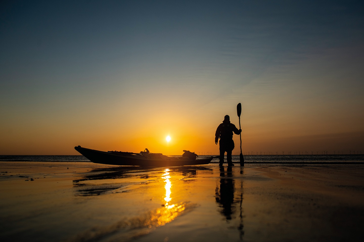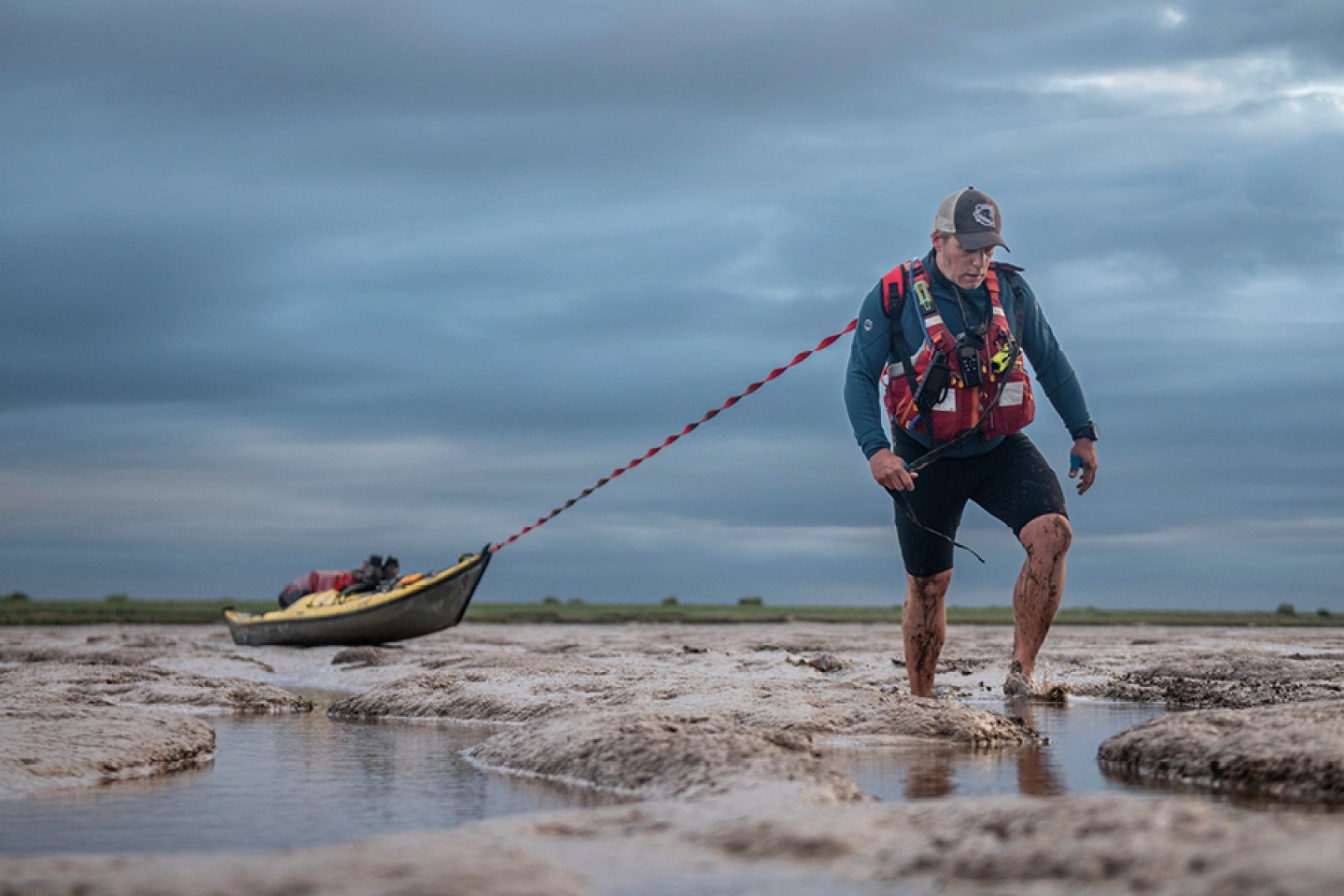 Even for someone as experienced and prepared as Jim, plans can still go awry – the important thing is being flexible. ‘For the most part I was on my own, but there were one or two sections that I did with others for safety reasons, or just for a bit of company, and when I went up the Humber I actually kayaked for two days with a guy that I know well,’ Jim recalls. ‘One of the things about the Humber [is] it’s got a fairly big tidal range. When it’s low tide, the sides of the estuary are all mud and there’s very few places where you can get out of the river so we had to pick our locations quite carefully, and if you don’t make one of those locations then it really is quite difficult – we didn’t make Goole.’ Luckily, Jim had looked at a back-up exit strategy beforehand at Blacktoft, but even then it took the pair over an hour and a half to make it up the bank of the river with their kayaks, taking them well past midnight.