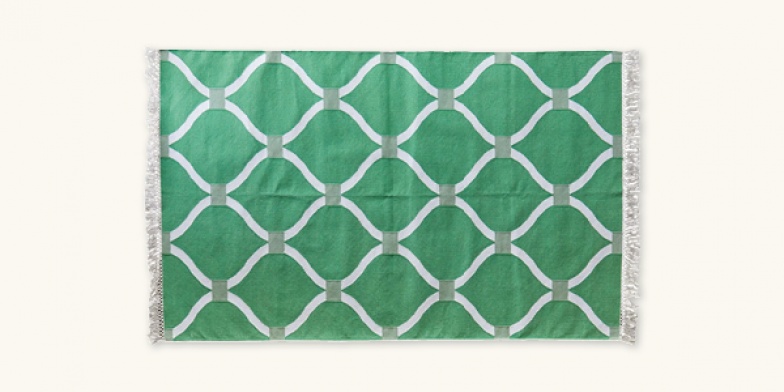 This rug was hand-woven in Jaipur, India, and adds welcome colour and pattern.