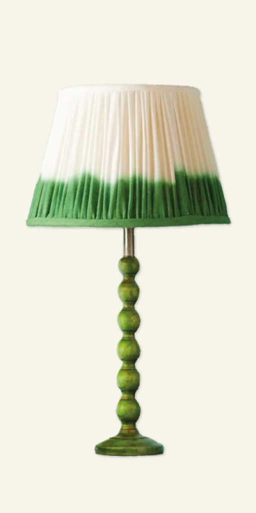 Large-scale parrots and foliage illustrate this linen lampshade with green fringing.