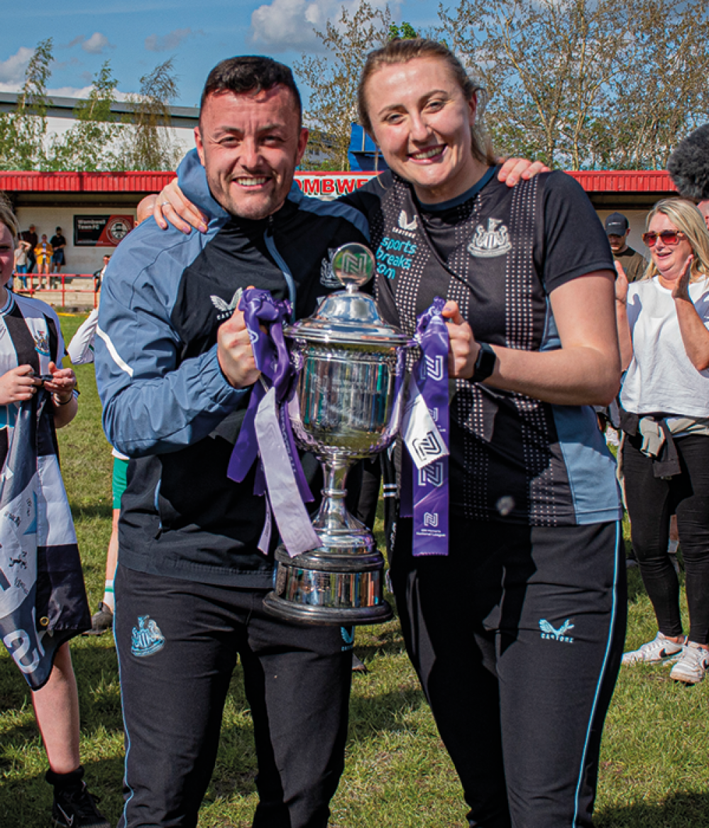 Having coached football since the age of 14 whilst growing up in Yarm, Becky began her coaching career alongside studying Sports and Exercise Science at Loughborough University then went on placement at Nottingham Forest Football Club, working with the under 18 boys’ team. ‘It was nice to be a female working in a boys’ and men’s environment; to experience that and build my confidence and understanding of what that football environment is like,’ she explains. Becky went on to work at Physiolab Technologies and coached part time at Nottingham Forest and at the University of Nottingham. ‘A job at Northumbria University came up so I applied,’ she says. ‘And part of the role was working for Newcastle United Women for 10 hours a week,’ she continues. ‘It was important, for me and my family, to come back to the North East, and it just shows how much the role has evolved at Newcastle United Women because I’m now the full-time manager here. The support from the club wasn’t previously there, but now it definitely is with the amazing new owners. Co-owner Amanda Staveley being involved has really helped drive everything for the women’s team.’