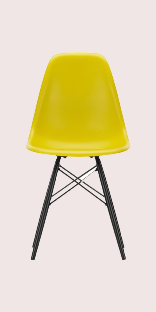 The Eames side chair is a classic for a reason – we love this mustard version with a black maple base.