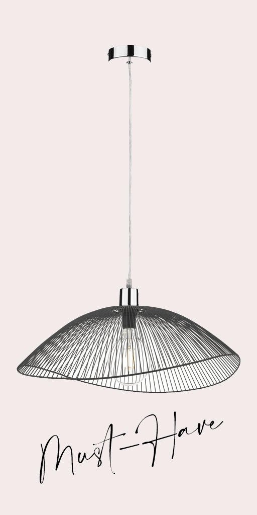 A curved edge enlivens a plain, dome-shaped pendant light.