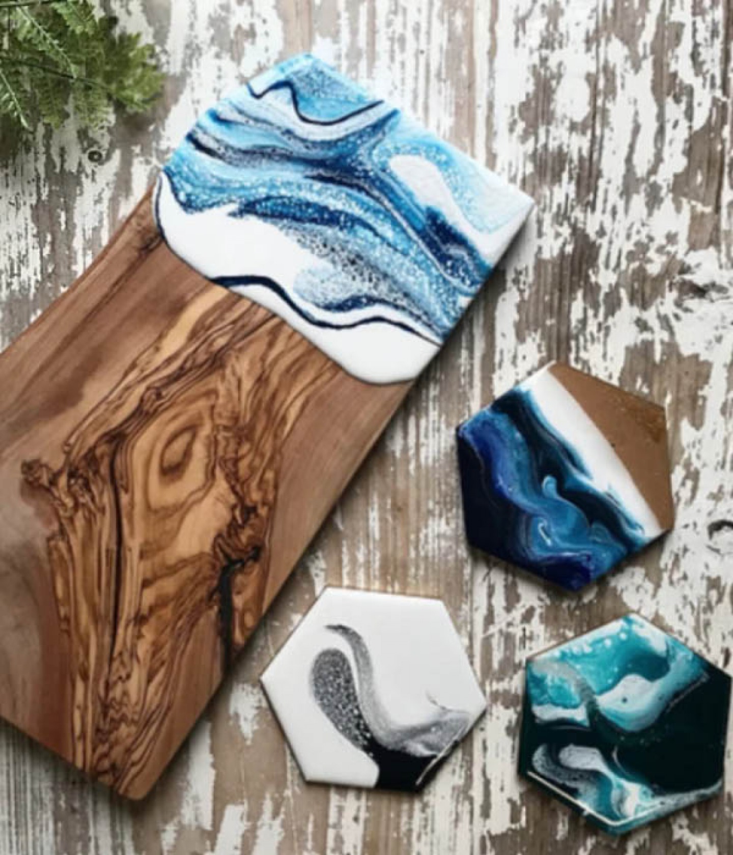 Samantha specialises in designing and hand-making luxury resin accessories for you and your home. Each of her serving boards is crafted from a single piece of sustainably-sourced olive wood before she individually hand-pours stunning epoxy resin artwork onto each one. Combining the unique wooden grain with her elegant marble-esque artwork, each piece is completely personal to you. See her work on display at Living North’s Christmas Fair in October. But, for now, discover more at samanthalois.com