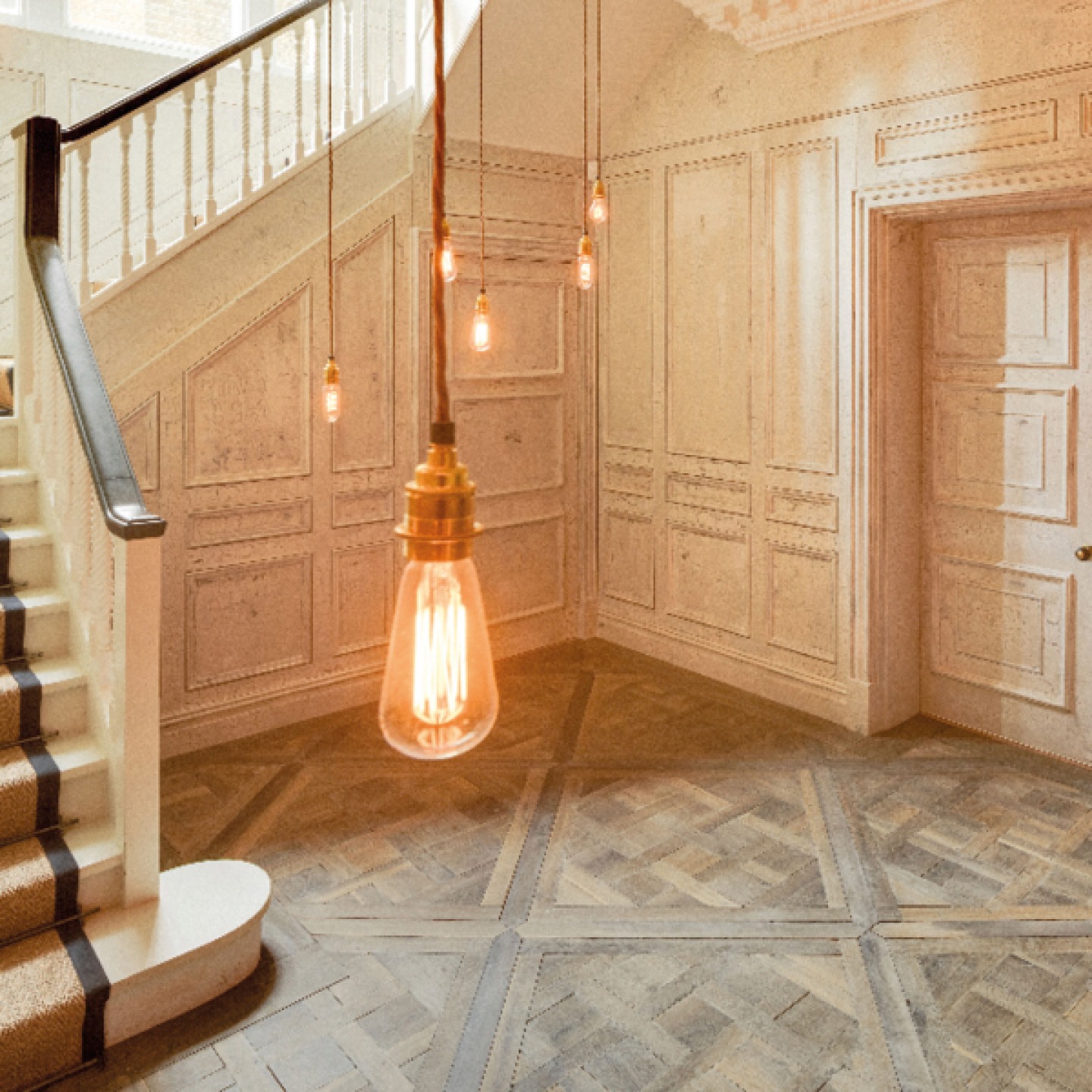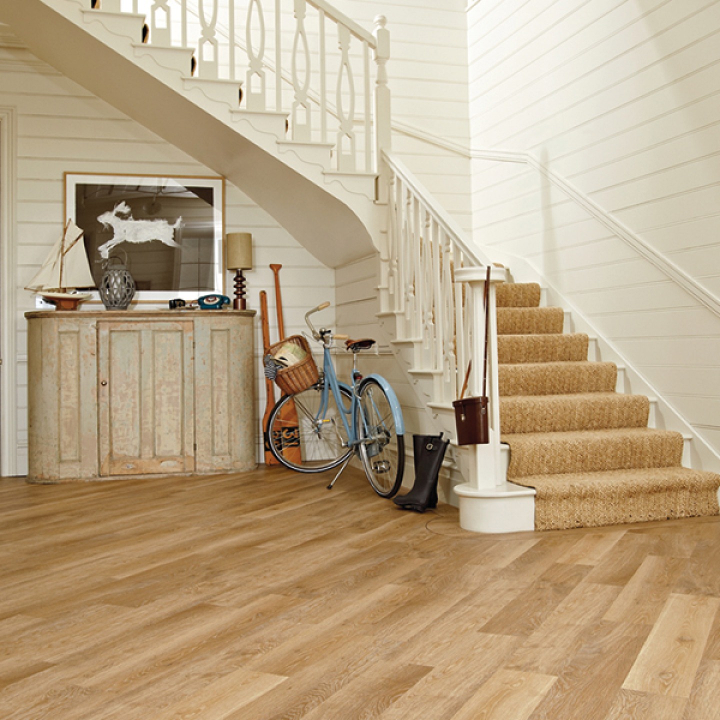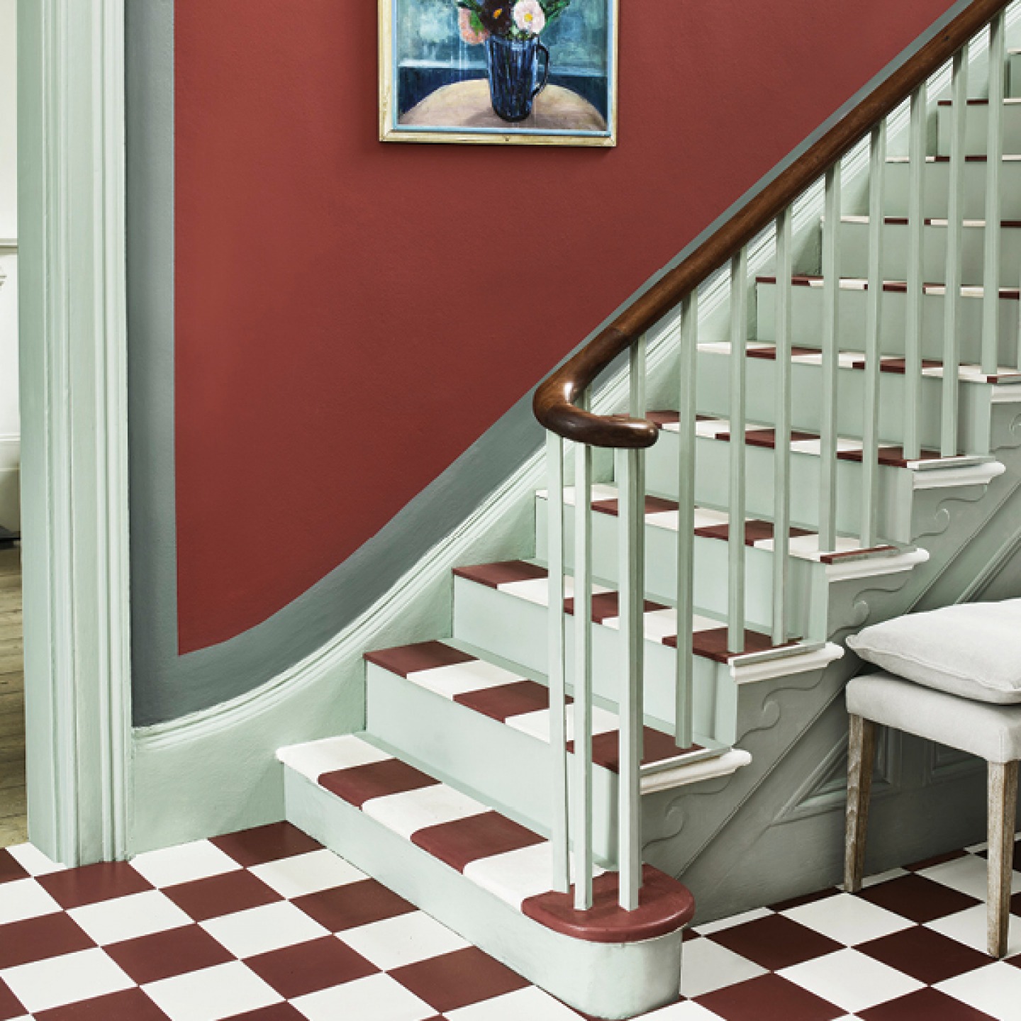 Ceramic floor tiles offer endless opportunities to add real impact to any interior and you need to think carefully about the size and finish as well as the colour. Here, a chequerboard effect in the hallway is extended up the stairs for an eye-catching and unusual finish. More expensive to lay than a laminate or vinyl, but needing less maintenance, you can expect a tiled floor to last 20 years or more.