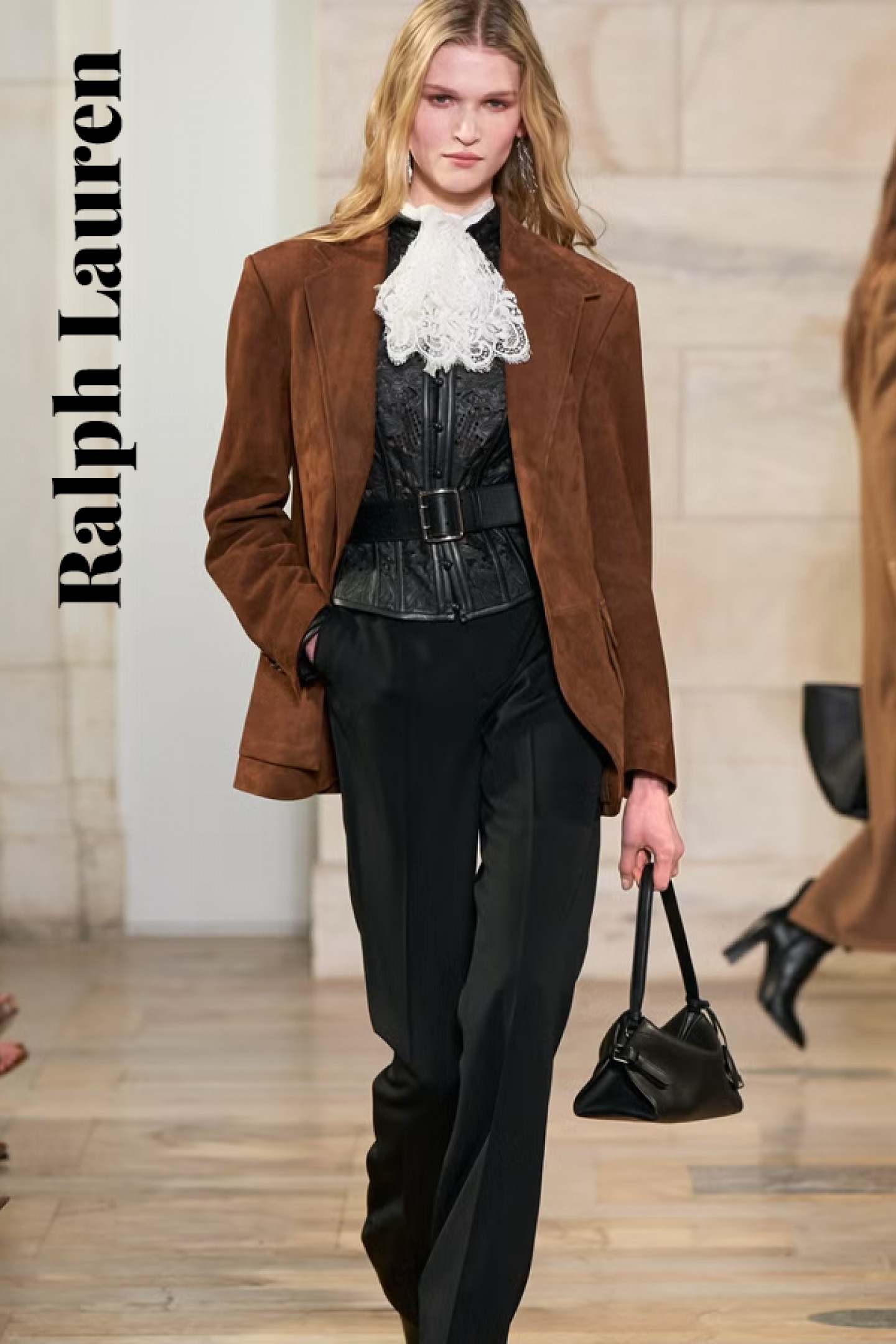 The new season looks to be dominated by a rich autumn palette of browns -nothing new there - but the resurgence of faux fur might take some by surprise. There's a return to 80s power-sculptured tailoring, softened by touches of lace and lots of leather. The taste for modern menagerie means animal print stays for this season, seen making a bold statement in many collections. Paris saw a penchant for pearls, prints and heritage plaids, and when it comes to accessories we're talking big bags and bangles.