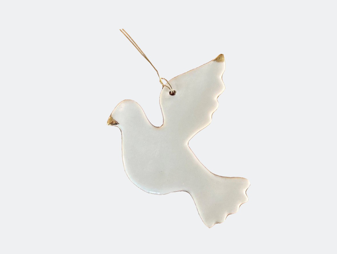 Hand rolled and cut from white porcelain these beautiful doves are brushed with gold for a touch of glamour. Dove Xmas tree decoration, £10 Kirsty Adams at The Biscuit Factory, Newcastle