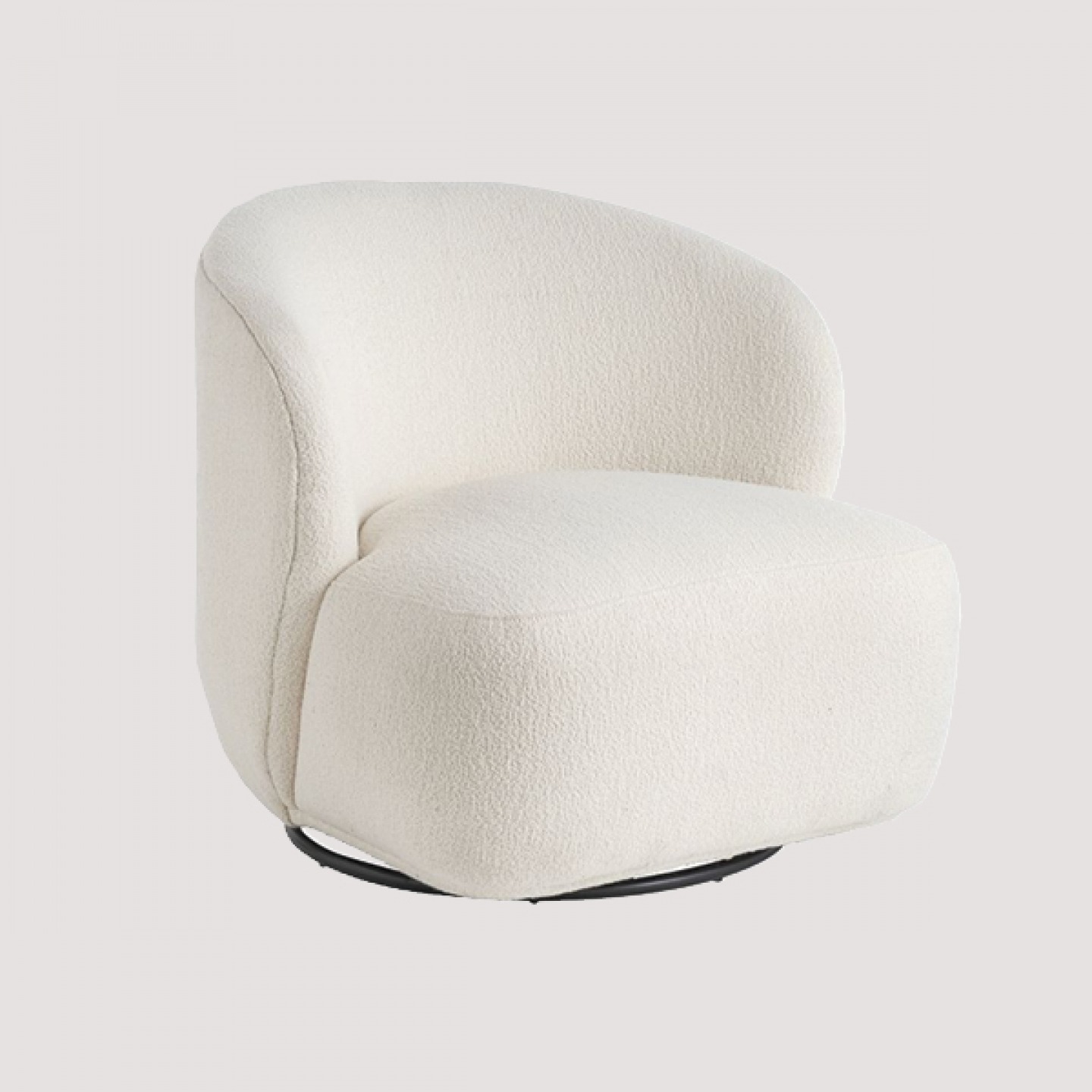 Cosy up in this chic cream, bouclé swivel armchair. Lisette armchair, £1,125 sweetpeaandwillow.com