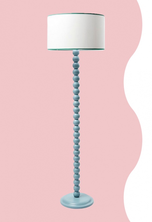 Bobbin blue wooden floor light, £195 Oliver Bonas, branches Yorkshirewide and Jesmond Newcastle oliverbonas.com