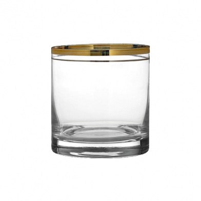With a thick gold band at the rim and a slimmer silver one below, these handblown tumblers are perfect water or whiskey glasses.