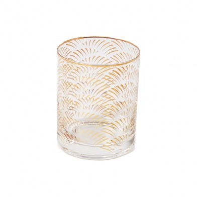 Adorned with a fan pattern and gold rims, these glasses come with plenty of flourish.