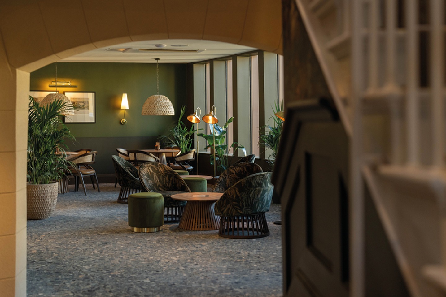 The hotel has a newly finished feel, and yet the interior design team has successfully created a clever heritage-country-chic meets contemporary townhouse aesthetic, that manages to pay suitable homage to the property’s historical significance and its beautiful surroundings. From large gilt-framed oil paintings to jewel-toned armchairs and brushed leather sofas, there is a very welcoming feel to the bar and lobby area – it’s the kind of place you can imagine ordering a delicious glass of wine after a country walk in your coat and wellies.