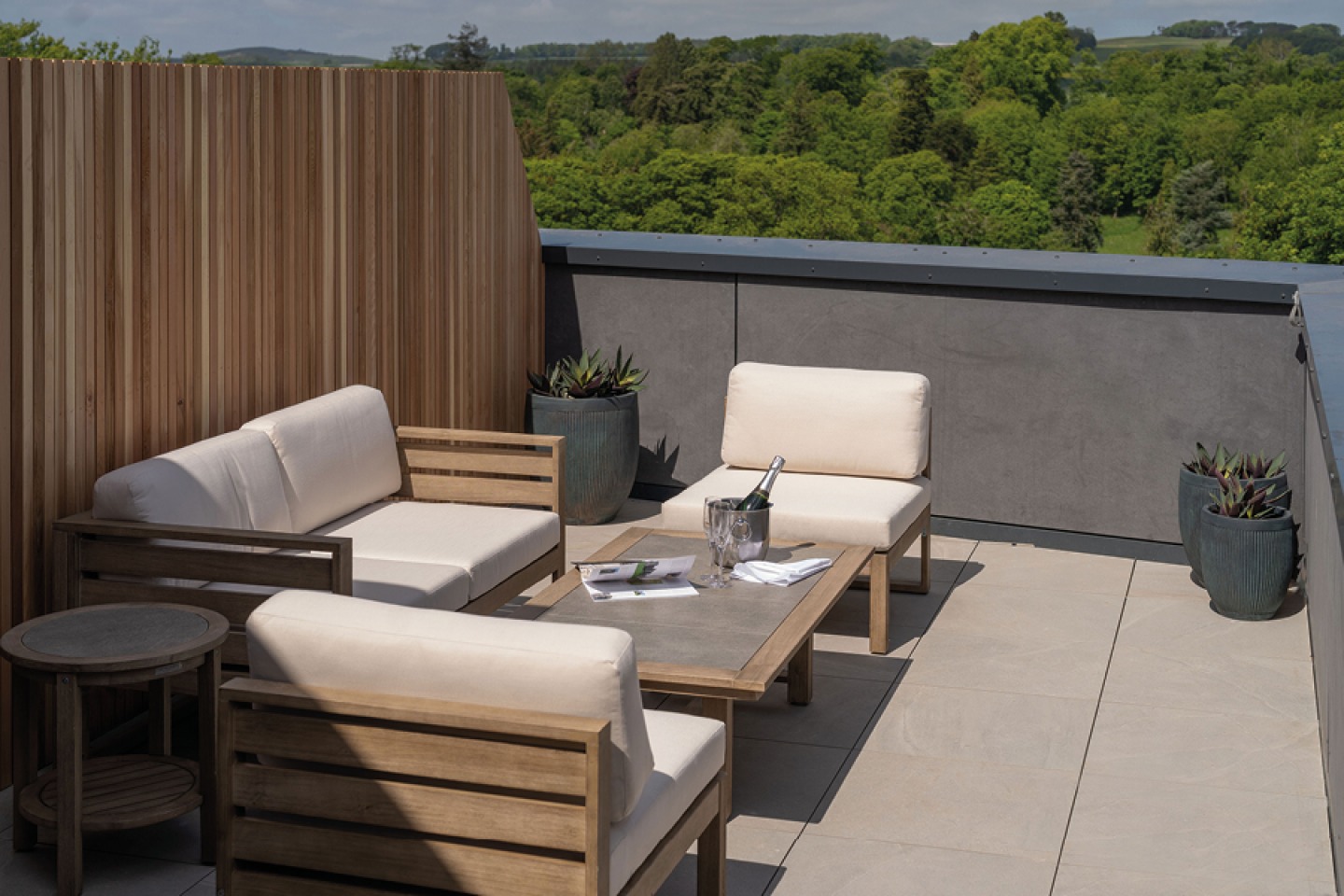 For us, this was more a case of shorts and flip-flops given the 20+ degree day we were enjoying, so we were pleasantly surprised to stumble across the hotel’s hidden courtyard tucked behind the hotel where guests were enjoying drinks in the sun. The careful thought that had gone into its design was clear: with slatted screens (made from wind-damaged trees from the Duke’s surrounding estate) and log-burners the space felt surrounded by nature but modern and comfortable at the same time.