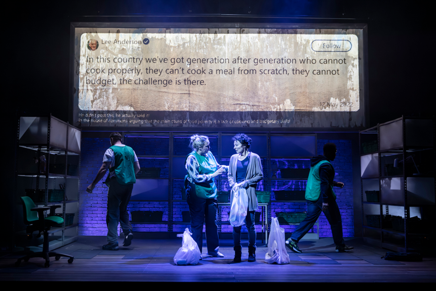 Projections of politicians’ speeches are shown as social media posts and posters on a screen above the set, which is intentionally understated. Three years on it would’ve been easy to increase the cast and amplify the set, but this production doesn’t need it. The six-strong cast are so talented and the emotions they convey are so strong that they have the audience members in the palm of their hands throughout.