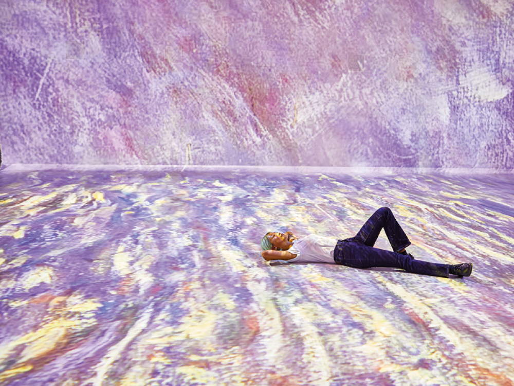 After a quick stop at the hotel to change, we walk down to Marble Arch to visit Frameless before dinner. This unique subterranean art gallery offers an immersive experience, with four themed rooms to experience. Each one makes use of beautiful projections (on walls, floor and ceiling) and sound to bring you inside the world of iconic works of art. In one room we are overwhelmed by unsettling and surreal artworks which ebb and flow across every surface, reflect in mirrors and generally amaze. In another, we’re immersed in iconic landscapes and seascapes, stepping on board Rembrandt’s boat as it’s tossed in The Storm on the Sea of Galilee, and marvelling at Van Gogh’s Starry Night as it unfurls across the sky. In our favourite gallery, tiny dots of colour gather on the floor like drifting leaves, and flutter and move in response as we walk through them, before moving up the walls to swirl and settle into paintings including Monet’s The Waterlily Pond.