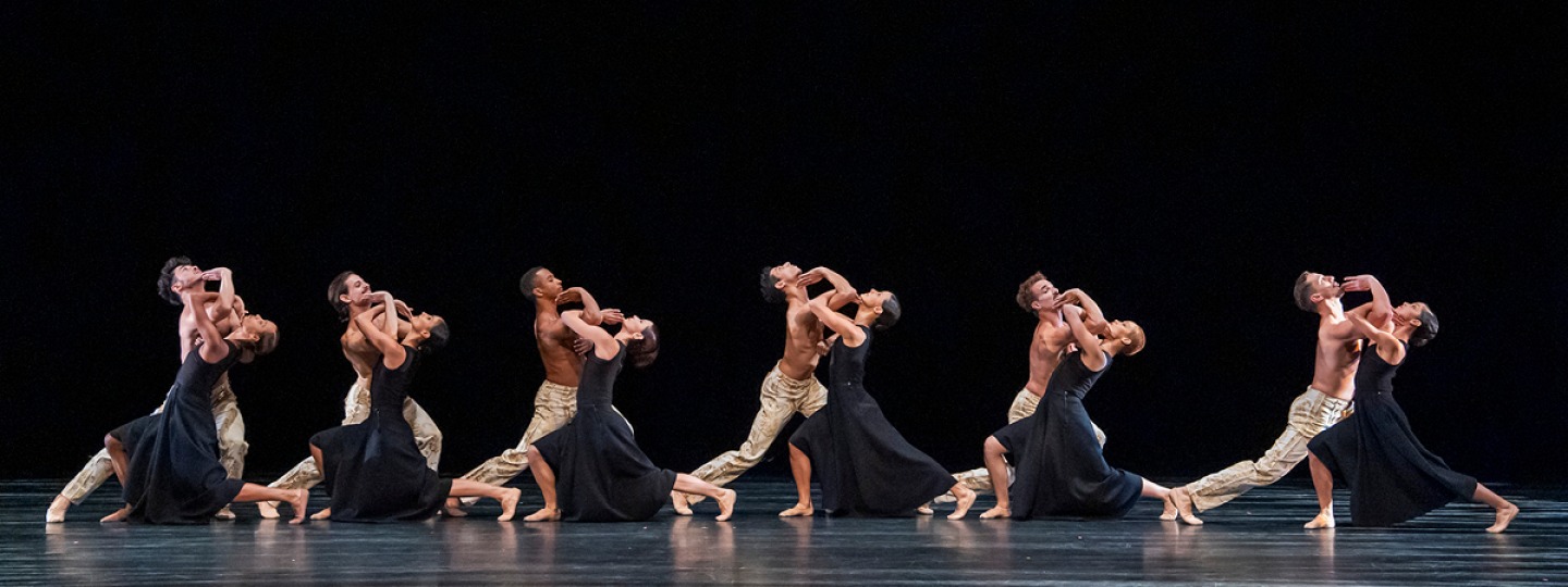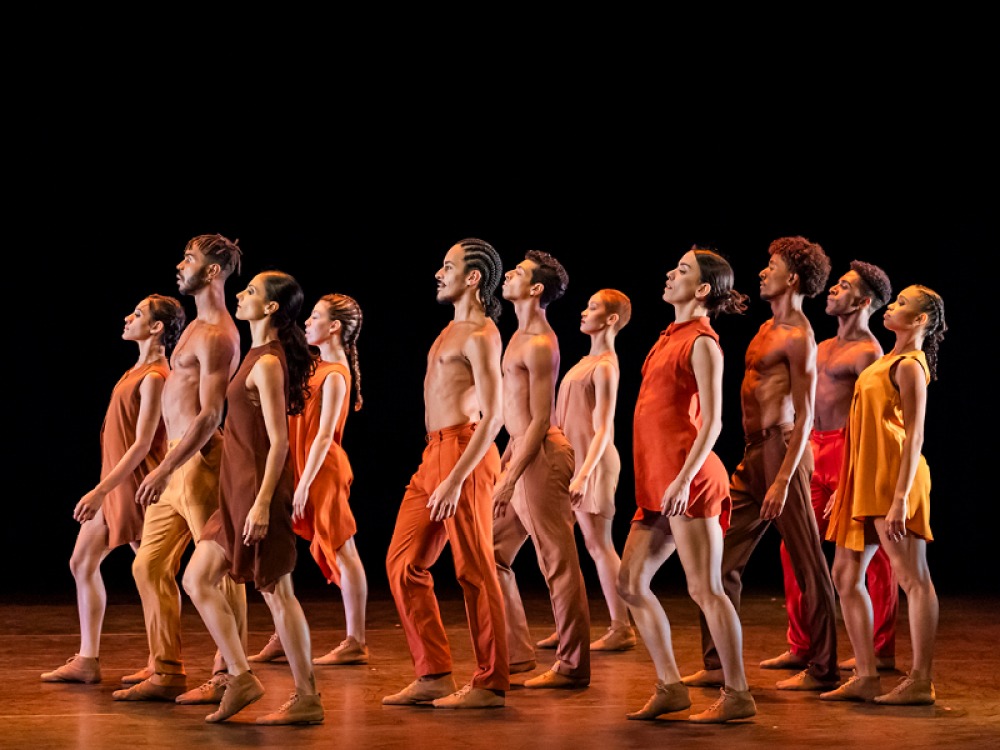 We’re told the company will showcase the work of three choreographers with three performances. The first is the intensely emotional Anthem. Created in 2019, this piece portrays life cycles and collective identities, inspired by songs that become hymns or anthems. The stage is bare and with no set or orchestra it’s up to the dancers to fill the vast space with only their bodies. There’s no need for any other distractions as our eyes are transfixed on their every movement as they move from corner to corner and spread right across the stage. The first dance begins with heavy breathing followed by symbols of freedom and protest (all of which is subjective of course). The dancers don’t miss a beat as they mirror each other’s movements, and as we listen to the music, we feel we recognise familiar sounds from anthems we know.